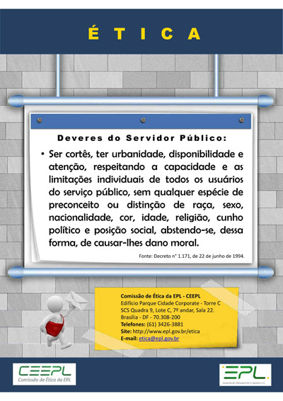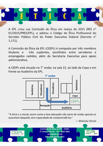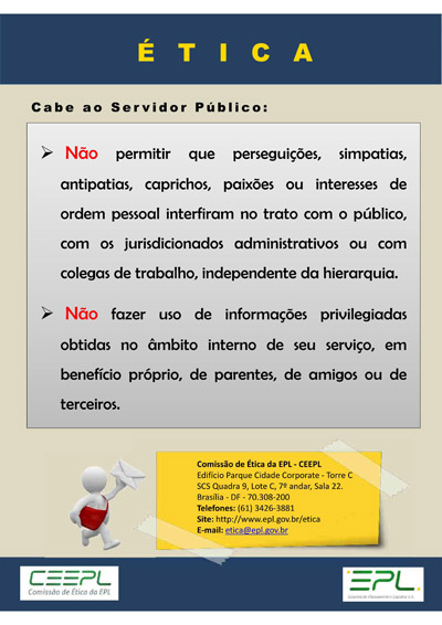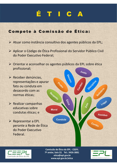 A EPL criou sua Comissão de Ética em março de 2015 (RES nº 01/2015/PRES/EPL), e adotou o Código de Ética Profissional do Servidor Público Civil do Poder Executivo Federal (Decreto nº 1.171).